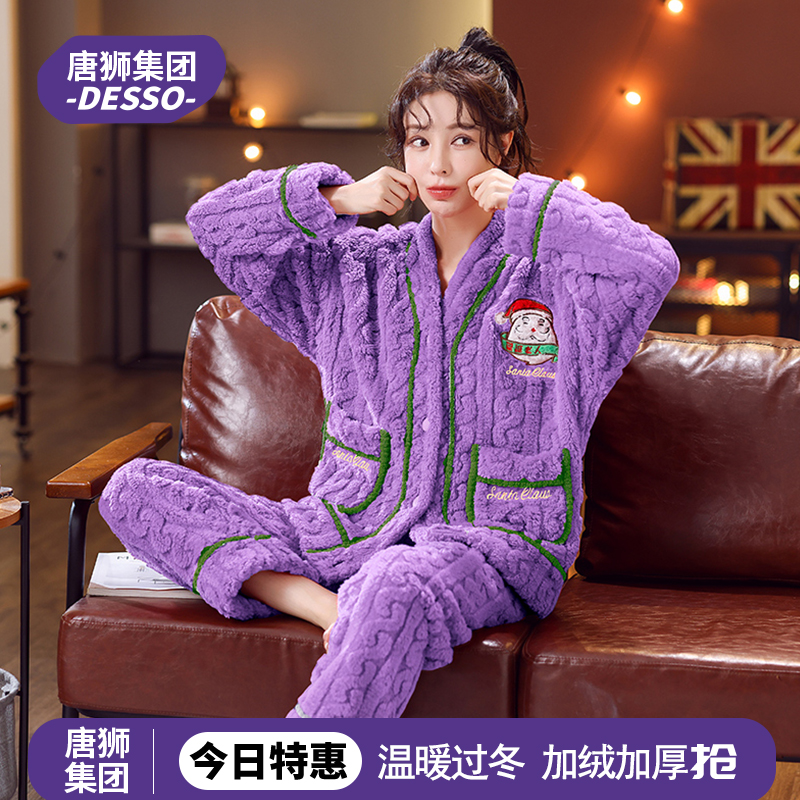 唐狮旗下DESSO秋冬新款法兰绒睡衣女可外穿保暖珊瑚绒居家服套装满159.0元减100.0元