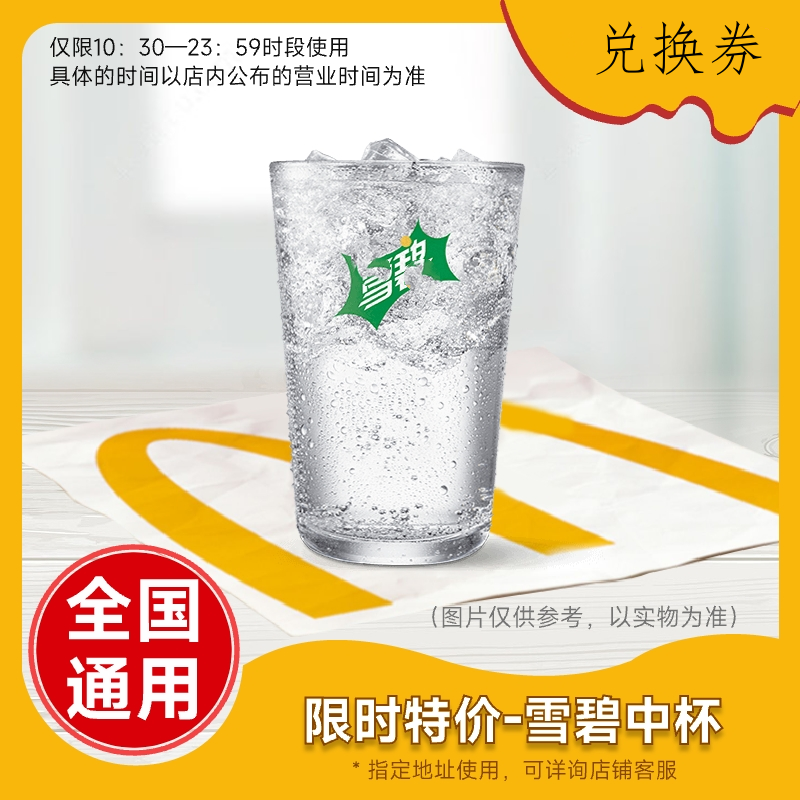 麦当劳特惠饮料中杯雪碧电子优惠券全国通用电子码核销券满1.01元减1.0元