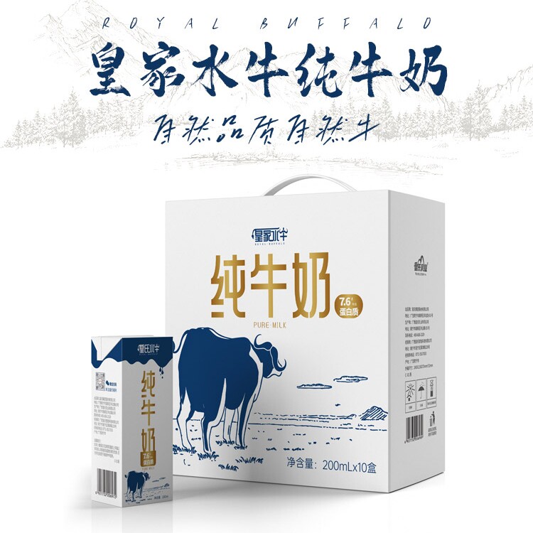 减乳糖 量贩装整箱乐纯水牛牛奶高钙4.0g蛋白儿童牛200ml*10盒*4满10.01元减10.0元