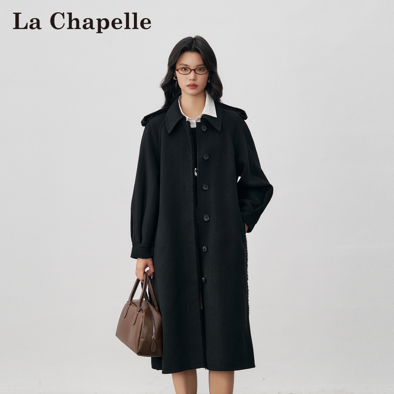 拉夏贝尔清仓2024秋冬季双面呢大衣女百搭时尚中长款系带毛呢外套满300.0元减61.0元