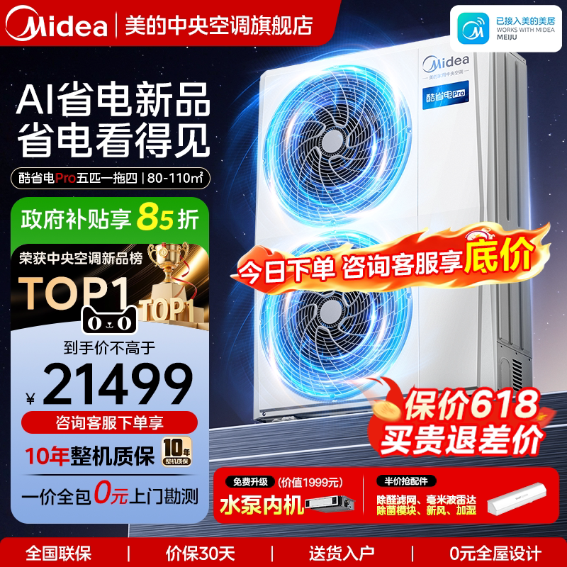 美的中央空调家用多联机酷省电Pro一拖四空调一级能效省电空调满5000.0元减500.0元