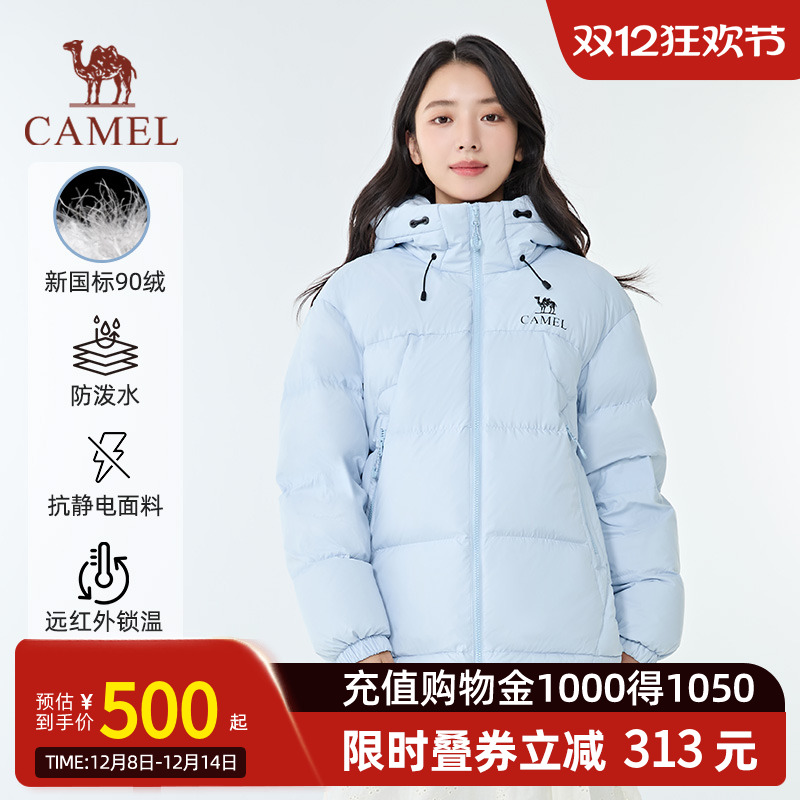 企鹅联名骆驼极光羽绒服女2024冬新款加厚貉子毛领户外三防工装男满1000.0元减60.0元